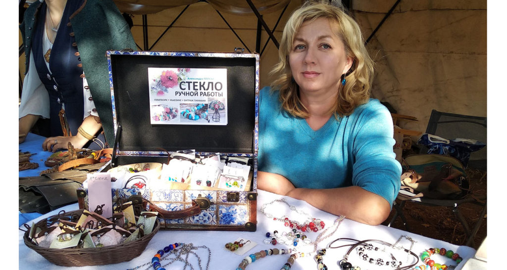 Когда Александра активно участвовала в ярмарках мастеров, с ней сотрудничали участники клуба «Пересвет». Для них она выполняла бусины по эскизам, восстановленным по остаткам украшений из раскопок. Сейчас она с теплом вспоминает то время, когда брала заказы, делала эти реплики, и, в общем, её украшения пользовались спросом. Неопределённая пауза в творчестве, может, и навевает временами лёгкую грусть. Сама Александра так погружена в заботы о детях, что пожимает плечами в ответ.