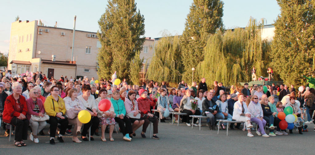 Праздничные мероприятия по традиции развернулись на центральной площади посёлка, и сюда ещё до начала официальных поздравлений начали стекаться люди. Местные детские коллективы художественной самодеятельности радовали собравшихся своим творчеством. Здесь же дети могли сфотографироваться и поиграть с огромными живыми и почти настоящими животными. Моим гидом по местным достопримечательностям стал в этот вечер юртовой атаман районного казачьего общества Александр Попов, который пришёл на праздник вместе с внуком Дмитрием.