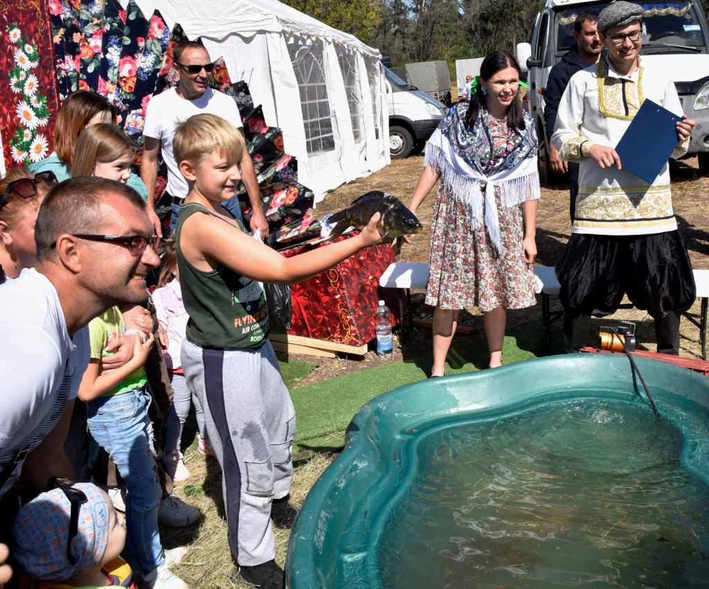– Это рыбу мы привезли с рынка. Хотя и у нас в Оренбургском районе в Урале тоже водятся карпы. Сегодня желающих порыбачить много. Ловить карпа руками довольно трудно, не у всех получается. Хорошо с этой задачей справляются дети, многие даже лучше, чем взрослые. В подарок победителю мы даём небольшой кулёчек с крекерами-рыбками, – объясняет Сергей.