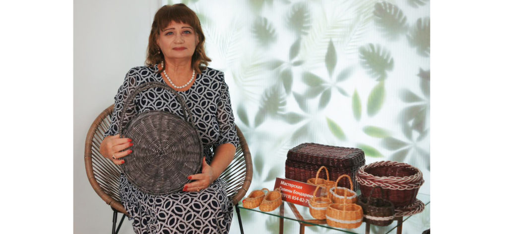 Работы каждой мастерицы выполнены в разной технике. Галина Бондаренко представила изделия из бумажной лозы: корзины, вазы, салфетки-подставки. Её дочь Олеся Щербакова дебютировала на выставке, представив сувенирные фигурки из ваты. У мастерицы получились очаровательные персонажи. Вера Павлова тоже представила очень интересные работы из бумажной лозы – вазы, конфетницы, подносы – и игрушку в ватной технике.