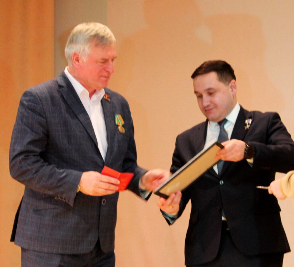 А Нурсултан Муссагалеев вручил главе района Василию Шмарину грамоту командования войсковой части 4158 за активное участие в оказании гуманитарной и благотворительной помощи военнослужащим, выполняющим задачи в зоне проведения СВО, а также общественную медаль Российской Федерации «За содействие». Он также вручил ветеранам юбилейные медали «Боевого братства». Награды общественной организации ветеранов вручил и председатель районного отделения «Боевого братства» Юрий Мироненко.