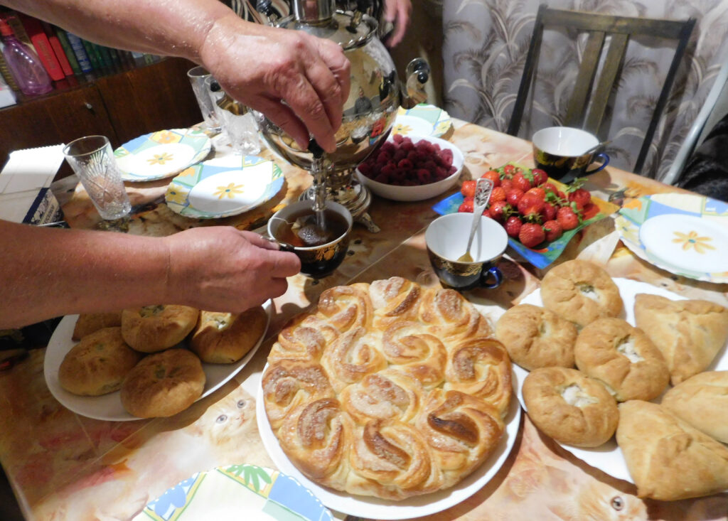 К Вербиным мы приехали в четверг ближе к обеду. Нас встречает младшая дочь супругов Татьяна Николаевна. Отмечает, что к нашему приезду семья готовится с раннего утра. В доме вкусно пахнет пирогами. Антонина Дмитриевна сразу приглашает к столу. Говорит, что за выпечку в семье отвечает как раз Татьяна. Каждый день балует домашних пирожками, курниками, слойками. Кулинарному мастерству она научилась от мамы, а та – от бабушки. А ещё на столе свежесобранные клубника и малина из сада, за которым, несмотря на почтенный возраст, вместе ухаживают Николай Иванович и Антонина Дмитриевна.