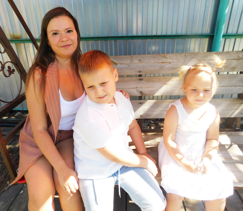 Во вторник днём застать удалось не всех. Глава семьи Денис уехал на работу, старшая дочь Ева отдыхает в лагере. А вот Екатерина с детьми Артёмом и Евой встречают нас у двери. Усаживаемся на большие качели во дворе. Хозяйка дома показывает семейные фотографии. Говорит, что с мужем познакомилась ещё в школе. Денис на два года старше девушки. Они жили в соседних дворах, вместе общались в компании друзей, а потом и сами не заметили, как влюбились. Четыре года влюблённые встречались. А в 2012 впервые поехали вместе отдыхать на море, в Турцию. Там-то Денис и сделал своей любимой предложение. Екатерина, не раздумывая, согласилась и до сих пор не жалеет об этом.
