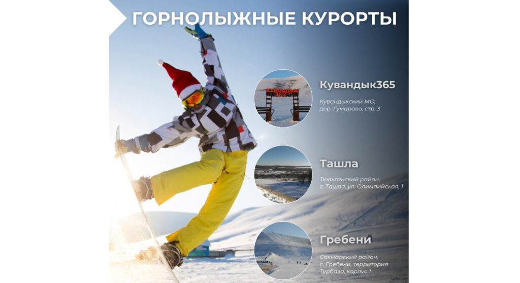Каждый год в декабре открывает свои двери горнолыжный комплекс «Кувандык365» и работает до весенней оттепели. Несколько дней назад открылся спортивно-восстановительный центр «Ташла», запущен в работу и горнолыжный комплекс «Гребени». Заядлые лыжники могут попробовать свои силы на трассах «Качкарский маршрут», «Зауральная роща» и «Экстрим-парк».
